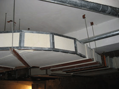 00001. 吊桿間距:按厚1.2mm鐵皮計(jì)算,每平米質(zhì)量9.36kg吊桿間距3000mm,金邦硅酸鹽防火板風(fēng)管每平米質(zhì)量13.92kg吊桿間距1220mm。承受載荷能力大于安全值。